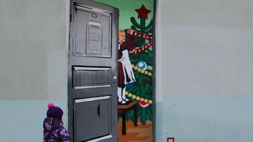 Павел Кас. «С Новым годом, товарищи!». Граффити. 2019. «Дверь в СССР» заворожила не только запечатлённого на фото ребёнка, но и многих пользователей соцсетей, по которым мгновенно разлетелся снимок. «Видеть бы лицо ребёнка», — писали они.