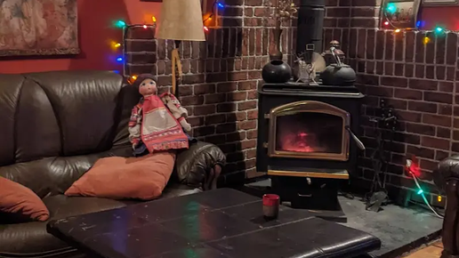 Зажгли камин, потрескивая он создавал волшебное настроение, тепло очага и воспоминания о вечной стихии сохраняющей жизнь на земле со времён Прометея . Разноцветные огоньки на новогодней елке мерцали на игрушках и шариках, а мне в кресле между камином и елкой упоительно пахло детством, хвоей, тёплым деревом и костром...