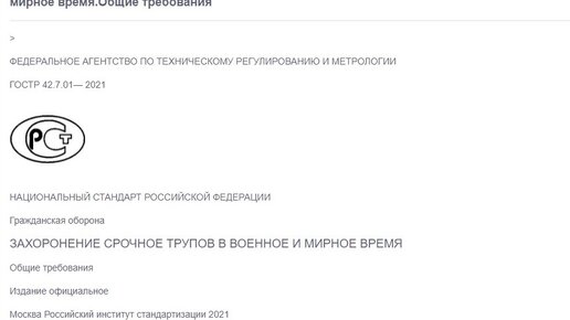Ещё не утихли обсуждения о ГОСТе по насильственной эвакуации, как появился новый ГОСТ о массовых срочных захоронениях, который вступает в силу 1 февраля 2022 года. Если совместить оба этих ГОСТа, то неприглядная картина вероятного будущего получается. Но теперь можно предположить, куда будут деваться эвакуированные пешим порядком горожане, которых будут этапировать на 120 км. от проживания (3 дня по 40 км, исходя из норм принудительно эвакуации). Если читать внимательно, то многие пункты вызовут массу вопросов...
