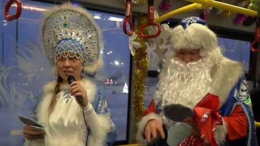 Дед Мороз и Снегурочка поздравили пассажиров автобуса в Новом Уренгое