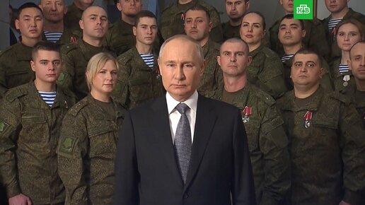 [ Смотреть видео на сайте НТВ ] Президент РФ Владимир Путин выступил с новогодним обращением к гражданам России. Речь главы государства стала самой продолжительной за все время, она длилась около девяти минут. Формат обращения также был необычным, оно было записано не на фоне Кремля, а в штабе Южного военного округа в Ростове-на-Дону. За спиной президента стояли военнослужащие, участвующие в спецоперации на Украине. В начале своей речи глава государства сказал, что 2022 год был годом «трудных, необходимых...