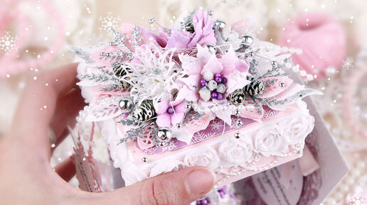 Если бы меня спросили о том, какие коробочки для меня самые-самые любимые, то я бы сразу ответила, что это новогодние коробочки с елочками))) Очень мне нравится работать над этими объемными открытками, делать елочки с нуля из ткани, кружева, фоамирана или (как здесь) из цветов. Основа коробочки выполнена из дизайнерского картона. Внешние стеночки оформлены снежной скрап бумагой, а внутренние стеночки оформлены бумагой с тиснением. ⠀ Крышечка тоже выполнена из плотного картона и оформлена скрап...