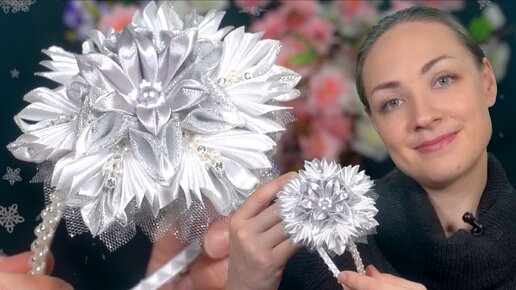 Снежинка- канзаши на ободке❄️ Снежинка из репсовых лент❄️ новогодний ободок❄️ #канзашиотнаташи #мк