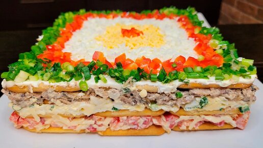Удачный закусочный торт на Новый год 2023 - Красивая закуска на Новогодний стол 2023