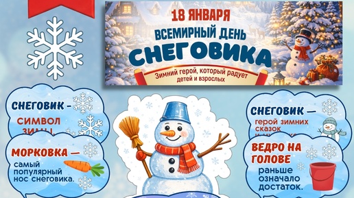 Оформление «18 января — Всемирный день снеговика» — комплект для классного часа в 1–2 классе. Баннер.