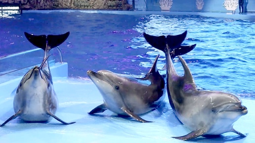 Новогоднее представление в дельфинарии – доброе и трогательное: оно соединило в себе отточенную технику акробатических элементов и нежную романтику парных танцев, а бесхитростный юмор сотрудники отдела по работе с морскими млекопитающими оттенили капелькой «волшебства». Зрители увидят, как морской котик Марио ищет Деда Мороза и наряжает елку, а после этого вместе со своими друзьями — другими обитателями дельфинария — отмечает Новый год под фейерверк и бой курантов. Смена сюжетных линий поразит воображение не только юных, но даже взрослых посетителей...