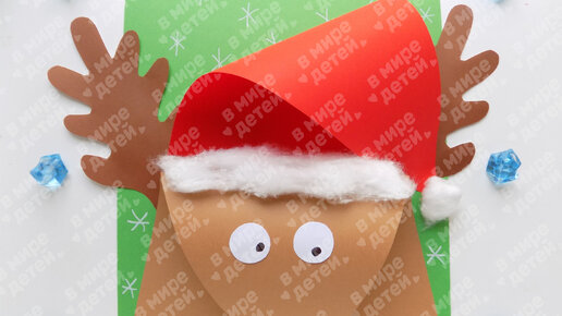 Простые поделки для детей. Новогодний олень из бумаги и ваты