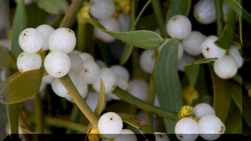 Здравствуйте, дорогие друзья. Приветствую вас на канале "Дачные истории". Раз в году многочисленные кустики омелы перебираются с крон деревьев под крыши многих западноевропейских домов. По старинному английскому обычаю, распространившемуся и на другие европейские страны, перед Рождеством полагается подвесить веточки омелы под потолком в комнате или над входом в дом. Существует поверье, что поцелуй под омелой сулит счастье в любви. Омела — на редкость интересное растение. Ее кустики шаровидной формы висят высоко на ветвях деревьев, словно птичьи гнезда...