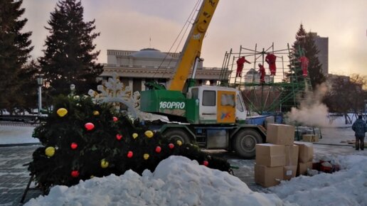 В Новосибирске перед оперным театром начали устанавливать новогоднюю ёлку