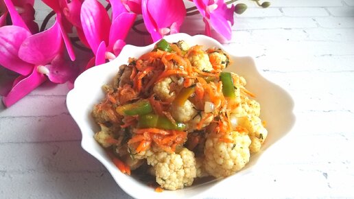 Добрый день, дорогие подписчики и гости! Урожай цветной капусты у меня в этом году необыкновенный! И сегодня я с ней приготовлю изумительный салат по-корейски. Есть его можно прям сразу, но все же лучше, если он чуть настоится. А вот еще рецепт корейского салата, популярного в нашей семье. Попробуйте, очень вкусно. Ссылка на рецепт 👇🏻. Способ приготовления: Цветную капусту хорошо промыть, разобрать на соцветия, каждое соцветие разрезать пополам (крупные соцветия можно разрезать на 3 или на 4 части)...