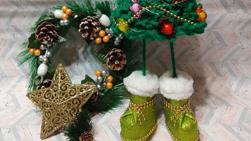 Здравствуйте☺️ . Сегодня я подготовила для вас подробное МК ёлочки 🎄🎄🎄 Давайте свяжем её вместе , ведь новый год уже не за горами . Ну , давайте приступим . Зелёная часть ёлочки Наберите цепочку 350 ВП из пряжа зелёного цвета и вяжем по схеме. У меня получилась полоса длинной 140 см . Ножки- сапожки Нам понадобятся два шарика из пенопласта . Из картона вырезаем две полоски длиной 12 см и шириной 4 см . Склейте трубочки с помощью термоклея . Из картона и фоамирана вырезаем подошву длинной 6 см и склеиваем их вместе ...