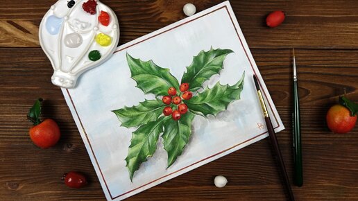 Как нарисовать остролист в шесть шагов! Живопись для начинающих.