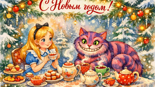 Волшебные открытки с Новым годом в стиле Алисы из страны чудес: немного чуда, немного чая и много смысла