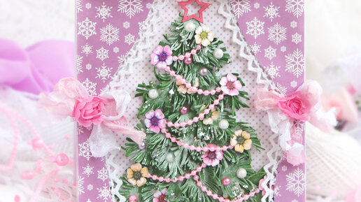 Сказочно-красивая открытка с новогодней елочкой ручной работы🎄