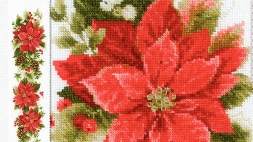 Пуансеттия - рождественская звезда. Вышитый символ праздника от известных фирм.