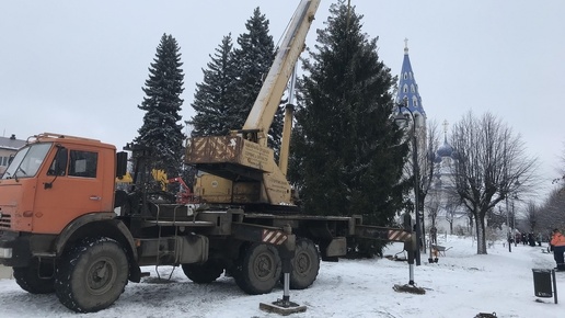 Лесную 12-метровую красавицу привезли из деревни Лужки Раменского сельского поселения и уже установили у фонтана. В ближайшие выходные на ней появятся игрушки и гирлянды. Еще одна ель, искусственная, несколькими днями раньше появилась на площадке позади Палехского Дома культуры...