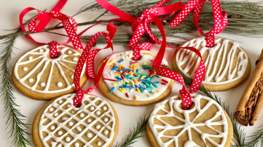 Этим печеньем можно украсить новогоднюю елку или, красиво упаковав, подарить родным и близким. Печенье может быть как мягким, так и хрустящим. Глазурь быстро сохнет и не крошится. Рецепт глазури очень простой, быстрый и без яиц. Ингредиенты на 18 – 20 штук: Тесто:
