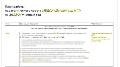 Воспользуйтесь готовым образцом плана, чтобы организовать работу педсовета в ДОУ на 2023-2024 учебный год