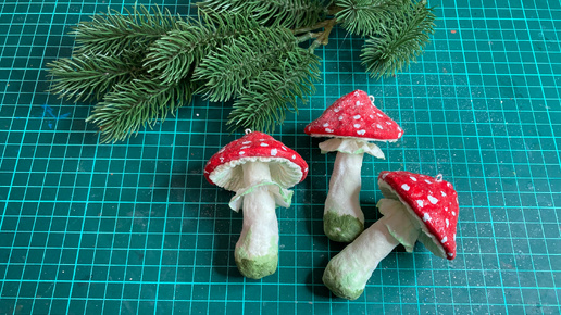 Елочные игрушки из ваты. Как сделать мухомор.