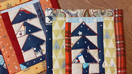 Подсмотрела у чехов идею подставки под горячее для кружки с глинтвейном. На первый взгляд просто, полоски пришить, что тут сложного. Сразу вышел затык с тканями. Сложно найти 10 расцветок тканей так чтобы гармонировали друг с другом. С трудом подобрала 6 лоскутов, сборную солянку, китайский сатин и белорусскую бязь. Использовала ткань темно-синего цвета со звёздами, спутниками и космическими кораблями для создания Ёлки. Лоскуточка зеленого цвета не нашлось. В 3 часа ночи, казалось что процесс шитья идёт нормально...