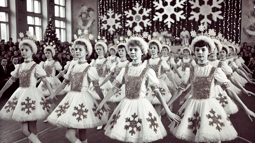 Конец декабря. Советские дети ждали главного — новогоднего утренника. В детском саду, в школе, во Дворце пионеров. А самые счастливые — попадали на кремлёвскую ёлку. Мечта каждого ребёнка в нашей стране. Новогодние утренники СССР — это особая атмосфера. Волшебство, которое наши родители помнят всю жизнь. Так праздновали детство в великой стране. За месяц до Нового года начиналась подготовка. Мамы шили костюмы. Зайчики, снежинки, петрушки. Каждый костюм — уникальный, сделанный с любовью. Из марли делали крылья для снежинок...