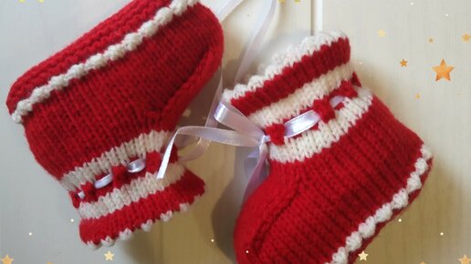 Новогодние пинетки описание. Вязание спицами для самых маленьких.