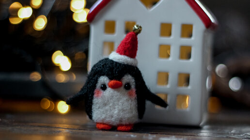 Показываю по шагам, как очень просто сделать пингвина из шерсти. Очаровательная новогодняя игрушка своими руками