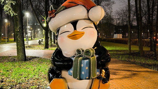 🐧Новогодний пингвинёнок появился в сквере им. Жолио-Кюри