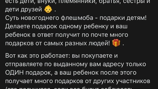 Мне казалось, что уже все знакомы с этим форматом развода людей на подарки и уже никто не попадается, но тут в истории в ТГ у одного человека с текстом И если кто-то решит участвовать в этом марафоне подарков, получает следующее сообщение: Условия участия такие: подарок вы дарите по адресу: