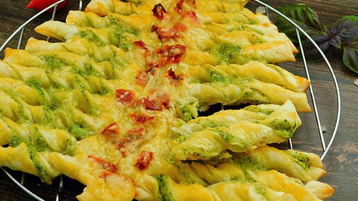 Пирог Елочка с соусом песто: хрустящая закуска с сыром на Новый год