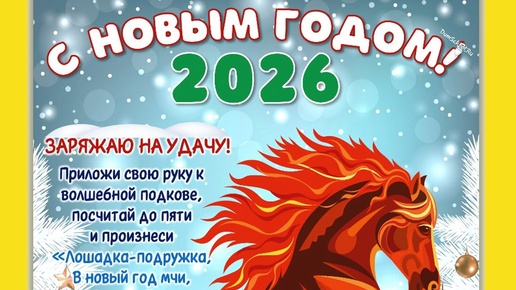 Готовы к новогоднему волшебству? ✨ Пора зарядится на полную мощь с помощью двух волшебных плакатов от главной героини 2026 года — Красной Огненной Лошади! Подарите детям не просто украшение, а самый настоящую магию, особенно для отличных оценок и звонкой удачи. 🐴 Плакат-талисман «Заряжаю на удачу»