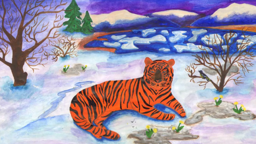 Плакат на новый год тигра красками