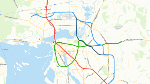Интерактивная карта перспективного развития метрополитена в Казани согласно генеральному плану