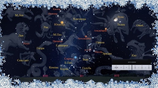 Какие созвездия и небесные объекты станут главными украшениями звёздного неба на Дону в праздничную ночь, и какие истории и мифы с ними связаны, рассказывает астроном Южного федерального университета. Заведующий учебной обсерваторией кафедры физики космоса Физического факультета ЮФУ Михаил Невский подготовил краткий путеводитель по звёздной карте на 31 декабря 2025-1 января 2026 года. "Самый заметный объект неба в новогоднюю ночь - Луна, которая ко 2 января достигнет полнолуния. Ближе всего к Луне в новогоднюю полночь будет созвездие Телец...