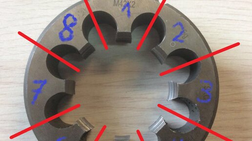 Как прогнать резьбу если нет такой плашки. Как увеличить плашку с М42 шаг 2 до М120 шаг 2.