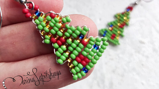 🎄Как сделать серьги (подвески, брелок) из бисера "Ёлочка" (мастер-класс к Новому году для детей)