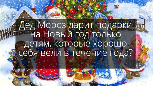 Нередко родители, дедушки/бабушки, опекуны говорят своим детям о том, что если они будут себя хорошо вести (не капризничать, помогать по дому, слушаться во всем родителей и т.д.) и хорошо учиться (на «4» и «5» или же только на «5»), то Дед Мороз на Новый год принесет им тот подарок, который они хотят. Но давайте честно ответим на вопрос: всегда ли «Дед Мороз» следуют этому правилу? Были ли случаи, когда Вы на Новый год дарили ребенку то, что он просил, вне зависимости от его поведения/успехов в школе? Думается, такие случаи бывают нередко...