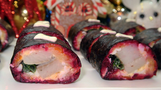 Самая необычная подача салата селедка под шубой в виде роллов, на праздничный стол