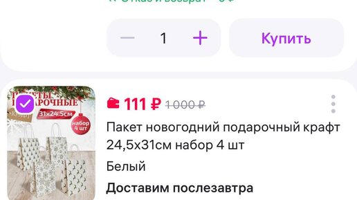 😀😀😀Holiday-House Пакет новогодний подарочный крафт 12х17см набор 4 шт