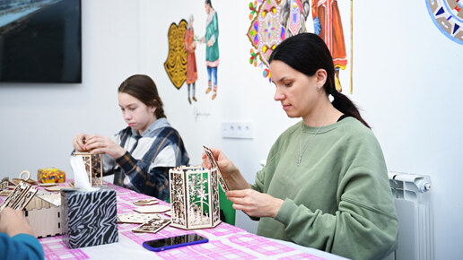 Мастер-класс от «Симфонии тайги» проходит в Амурском утёсе. Замерзшую белую реку видно из окна арт-пространства, поэтому во время минутки отдыха можно просто посмотреть вдаль и зарядиться энергией. Собрать фонарь очень просто. По сути, перед вами конструктор. Превратить горстку деревянных деталей в функциональную вещь можно всего за 5 - 10 минут. Но перед этим нужно каждую часть будущего изделия хорошенько прокрасить. – Будем сохранять фактуру дерева по авторской технологии. Поскольку гуашь на таком...