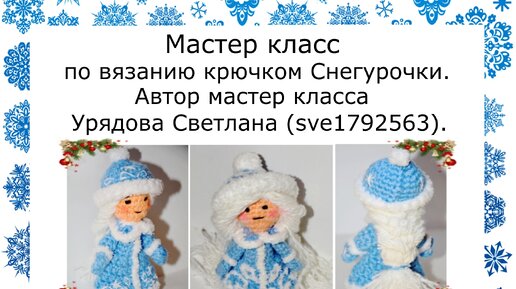 Меня зовут Светлана! И я вяжу игрушки крючком. Скоро новый год и хочу поделиться своим МК. по вязанию Снегурочки крючком.