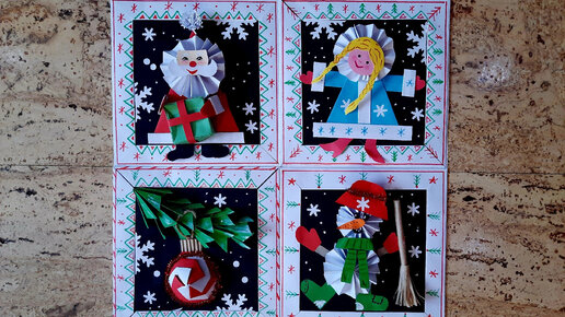 Доброго дня, уважаемые читатели канала! Я давно запланировала, что соберу новогодние картинки в одно модульное панно. Не хватало одного персонажа. Встречайте! Снегурочка! Дедушке теперь будет куда веселее. Снегурочка пошла в пляс от того, что скоро уже Новый год)) Я не буду показывать, как сделать раму для панно. Это можно посмотреть здесь. Начинаю сразу со Снегурочки. Для шубки квадрат бумаги размером около 8,5Х8,5 кв. см. Для рукавов - 3Х8,5 кв. см. Две стороны квадрата складываем к диагональной складке...