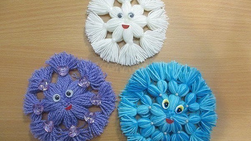 Снежинка из пряжи. Подойдет как поделка в садик/школу.