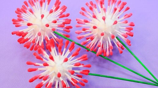 Новогодняя поделка в детский сад (школу) из ватных палочек и ниток