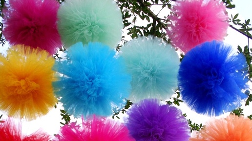 Фатин всегда смотрится очень нарядно. С помощью этой воздушной ткани можно создать нечто совершенно необычное. Наряды из фатина всегда воздушные, красивые, романтичные. Не менее привлекательны и украшения, сделанные из этой ткани. Так, с помощью одного лишь фатина можно преобразить свой дом до неузнаваемости. Если грядет какое-то торжество или намечается романтический вечер, вспомните об этом. Вы не пожалеете! Мы предлагаем сделать помпоны из фатина своими руками — простой и оригинальный, очень нарядный элемент декора...