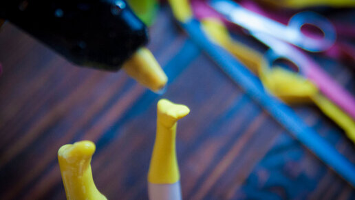 Клеевой пистолет - очень практичная штука. Стержни довольно дешёвые, есть даже цветные есть с блёстками, но даже им самого обычного, прозрачного, можно сделать красоту.