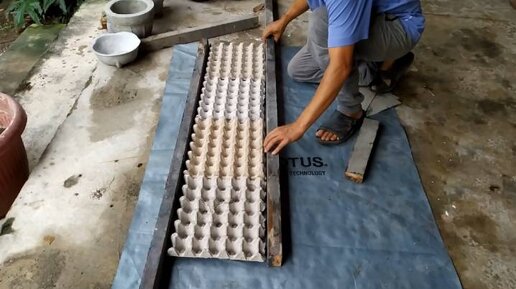 Положила яичные лотки на пол и залила цементом. Идея-находка для участка