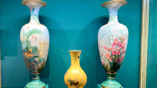 Представлены красивейшие интерьерные фарфоровые вазы из частных коллекций, музея Императорского завода, собрания Эрмитажа в росписи природными флористическими мотивами...