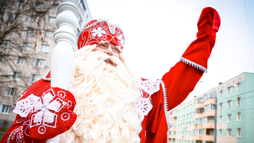 На улицах Подольска Дед Мороз тормозит машины и дарит водителям подарки