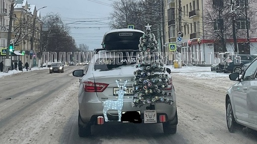 На улицах города в праздничные дни появился необычный новогодний автомобиль, фото которого моментально разлетелось по страницам тверских социальных сетей. Машина «Лада Веста» украшена яркой инсталляцией – на заднем бампере прикреплена елка с огоньками и большой светодиодный олень.
